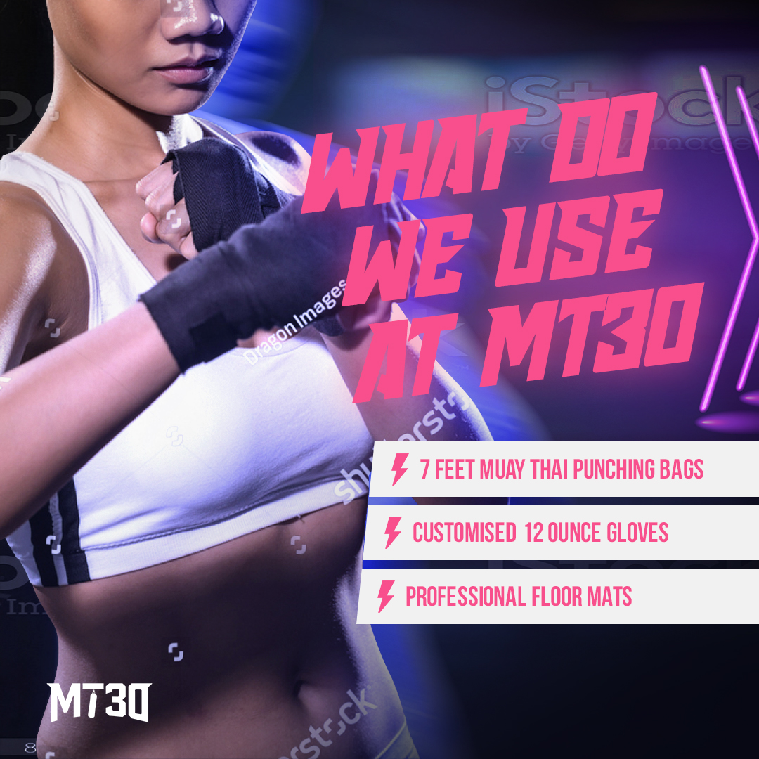 MT30 offers core cardiovascular and endurance sessions with techniques inspired from Muay Thai and Kickboxing guaranteeing a high intensity workout to the beat of music.